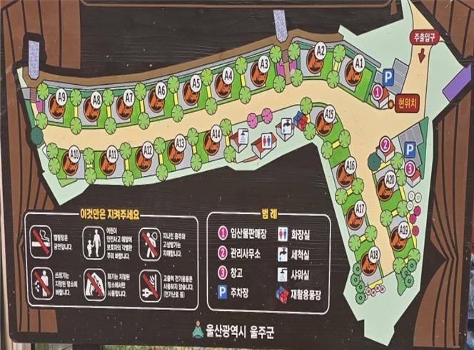 ※ A1 ·A14·A15 중복예약 고려하여 예비사이트로 배정했으니 양해 부탁드립니다. ▣ 취소·변경 • 사용예정일 2일 전까지 가능하며 유선 문의만 가능 • 문의 가능 시간 : 09:00~12:00, 13:00~18:00 (휴장일 제외) • 이미 예약자가 있는 경우에는 예약 변경이 불가합니다. ▣ 주소 : 울산광역시 울주군 온양읍 운화리 산155-3 (대운산군립야영장) ▣ 문의처 ☎ 052)229-9610 |